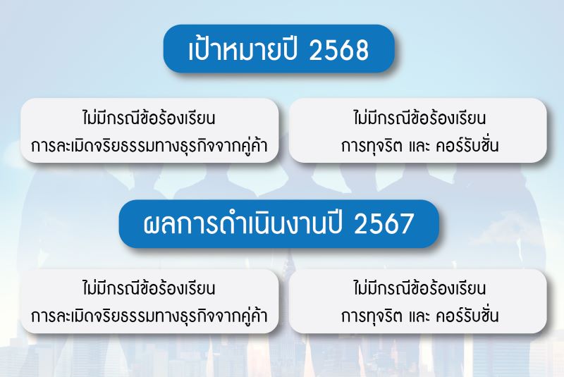 และจรรยาบรรณทางธุรกิจ เพื่อยกระดับการบริหารจัดการองค์กรให้มีประสิทธิภาพและสร้างความเชื่อมั่นแก่ทุกภาคส่วนอย่างยั่งยืน