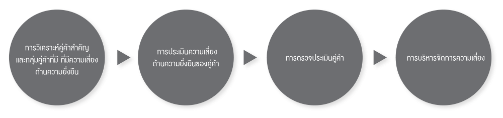 ♦ วิเคราะห์ ประเมิน และบริหารความเสี่ยงของคู่ค้าตามระยะเวลาที่กำหนด ตลอดจนตรวจสอบและควบคุมกิจการภายใน เพื่อลดความเสี่ยง และลด